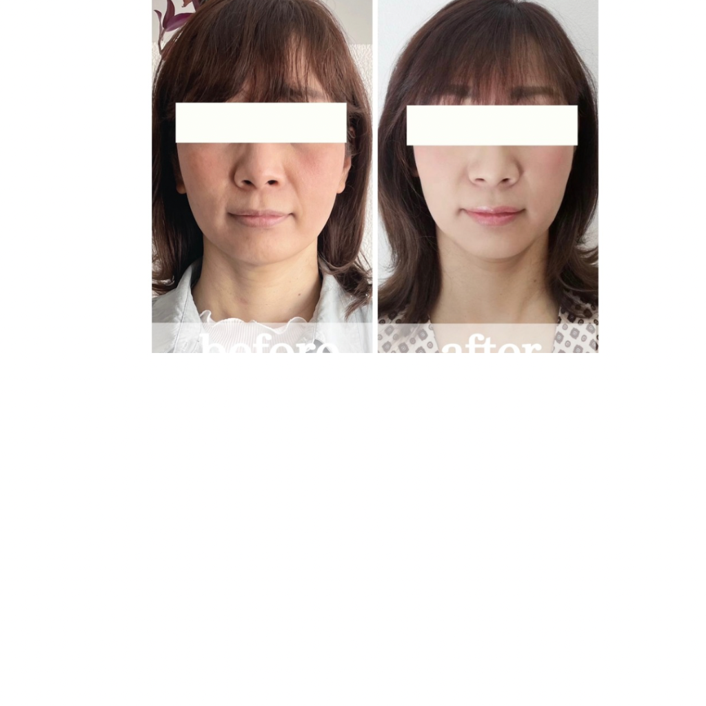 『お顔を小さく、楕円形の輪郭を変えたい』→輪郭の縁が後に倒れ3D顔の小顔に。口周りの筋肉の調整でアゴ周りがスッキリ、垢抜けました。