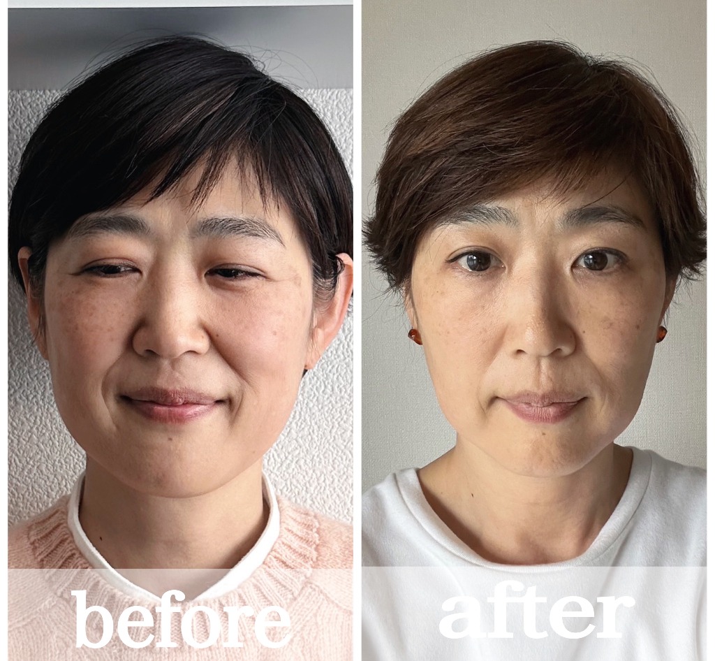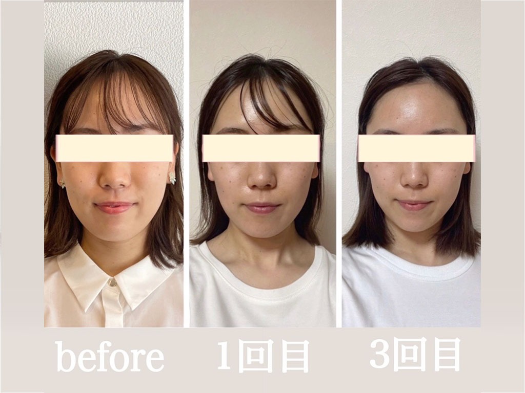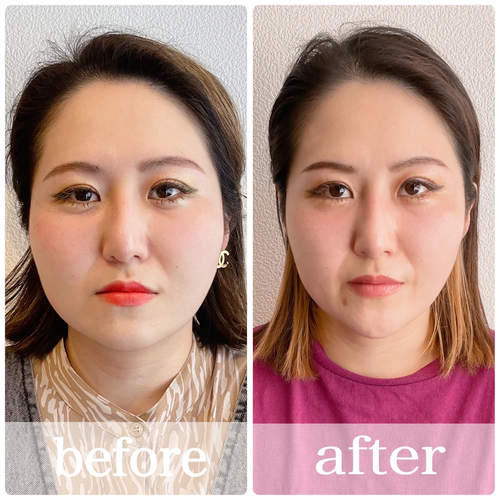 『お顔を小さく、楕円形の輪郭を変えたい』→輪郭の縁が後に倒れ3D顔の小顔に。口周りの筋肉の調整でアゴ周りがスッキリ、垢抜けました。