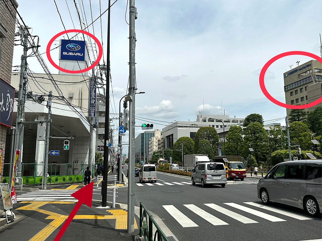 ④ 左にスバル、右方向に「江東区役所」が見えてきます。そのまま直進します。
