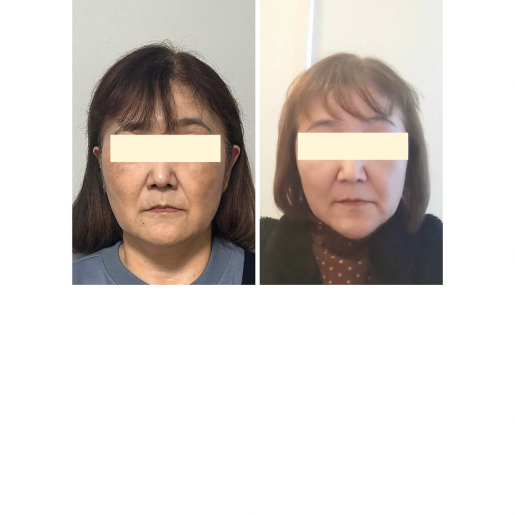 同時に、むくみの解消・余白を少なく・エラ張り縮小などにも対応しながら引き上げますので